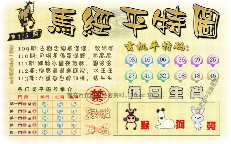 113期:六肖中特【狗龙猴羊兔】开:蛇13中